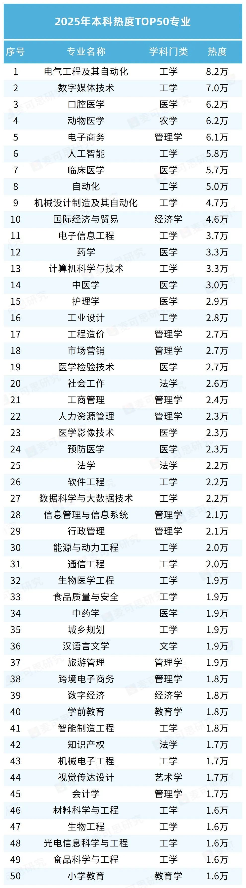 2025年本科熱度排名前50強專業(yè),美術(shù)類專業(yè)上榜有哪些?